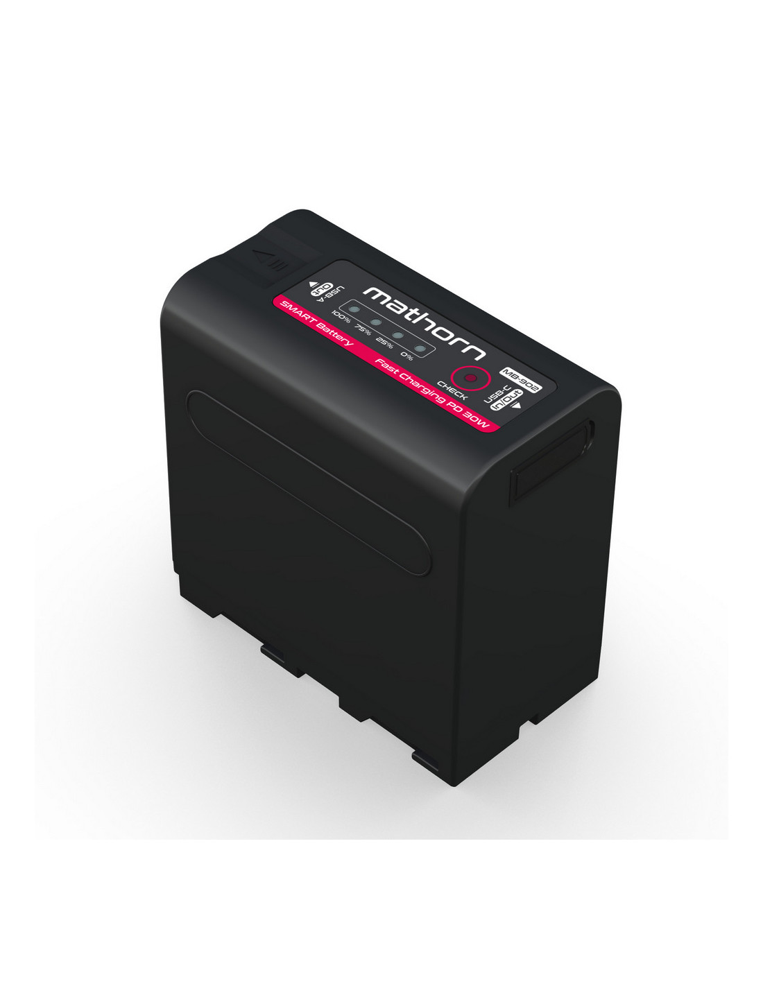 Najważniejszą nowością w modelu MB-902 jest moduł szybkiego ładowania SMART, znany z baterii Mathorn serii V-mount. Bateria została wyposażona w dwukierunkowe złącze USB-C, obsługujące protokoły Power Delivery 3.0, AFC, Huawei FCP i SCP oraz Quick Charge 4.0. Złącze USB-A również zyskało wsparcie dla protokołów Huawei FCP, SCP oraz Quick Charge 3.0. Dzięki temu MB-902 może nie tylko zasilać urządzenia korzystające ze złącza NP-F, ale z powodzeniem pełnić rolę pojemnego i szybkiego powerbanku.