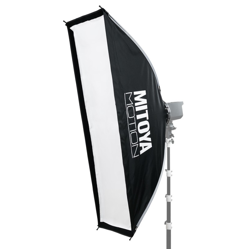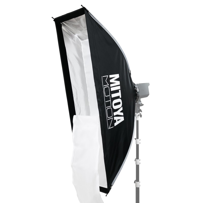 MITOYA MOTION STRIP - mobilny softbox studyjny o kształcie wydłużonego prostokąta i wymiarach 30 × 120 cm. Wyposażony w mechanizm szybkiego rozkładania oraz stelaż poprowadzony na zewnątrz czaszy. Zintegrowany adapter Bowens. W zestawie dwa dyfuzory, grid oraz wytrzymały pokrowiec.