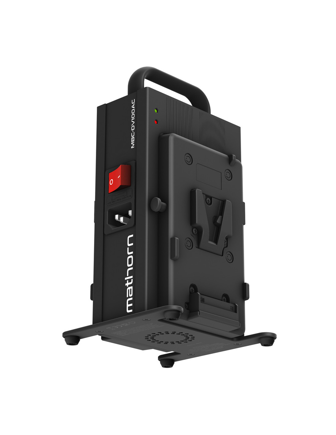 Mathorn MBC-DV100AC to kompaktowa ładowarka sieciowa AC-DC o mocy 110 W, przeznaczona do baterii V-mount / V-lock wykorzystywanych w produkcjach filmowych i studyjnych. Urządzenie wyposażono w dwa niezależne porty ładowania (16.8 V / 3 A, 50 W każdy), umożliwiające jednoczesne ładowanie dwóch akumulatorów, także o różnych pojemnościach.