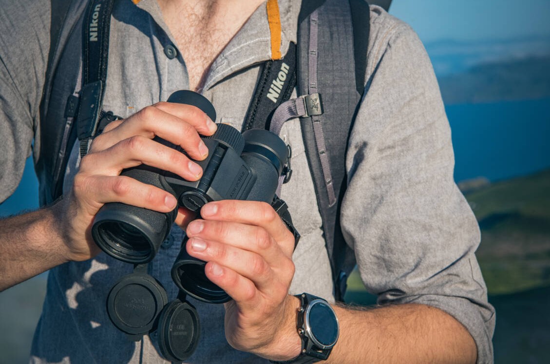 Przeprojektowany, stylowy korpus zachwyca wyrafinowaną czystością formy, a przy tym wygodnie leży w dłoni, gwarantując pewny chwyt dzięki ochronnemu gumowaniu, które zabezpiecza urządzenie przed uderzeniami. W projektowaniu szczególny nacisk postawiono na trwałość – lornetka jest wodoszczelna (do 1 m przez 10 minut), jak również zabezpieczona przed zaparowaniem, co czyni ją idealnym wyborem na wyprawy w teren.