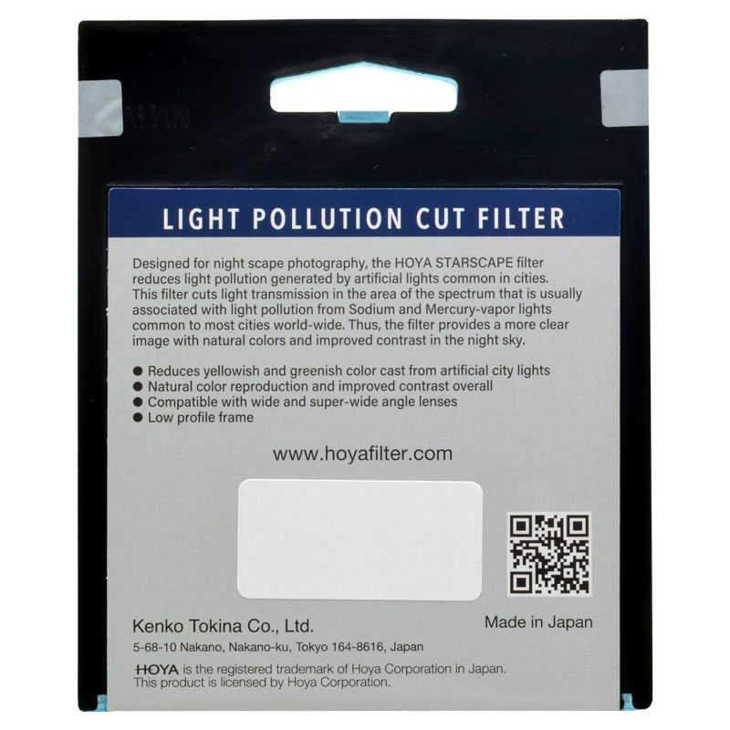 Inne podobne filtry, które ograniczają zanieczyszczenia świetlne stosują specjalną powłoką szklaną, mogącą powodować zmianę koloru, szczególnie w przypadku stosowania z obiektywami szerokokątnymi lub superszerokokątnymi. Filtr HOYA STARSCAPE osiąga ten sam rezultat dzięki zastosowaniu specjalnej formuły szklanej, dzięki czemu nie występuje przesunięcie koloru nawet przy bardzo szerokich kątach