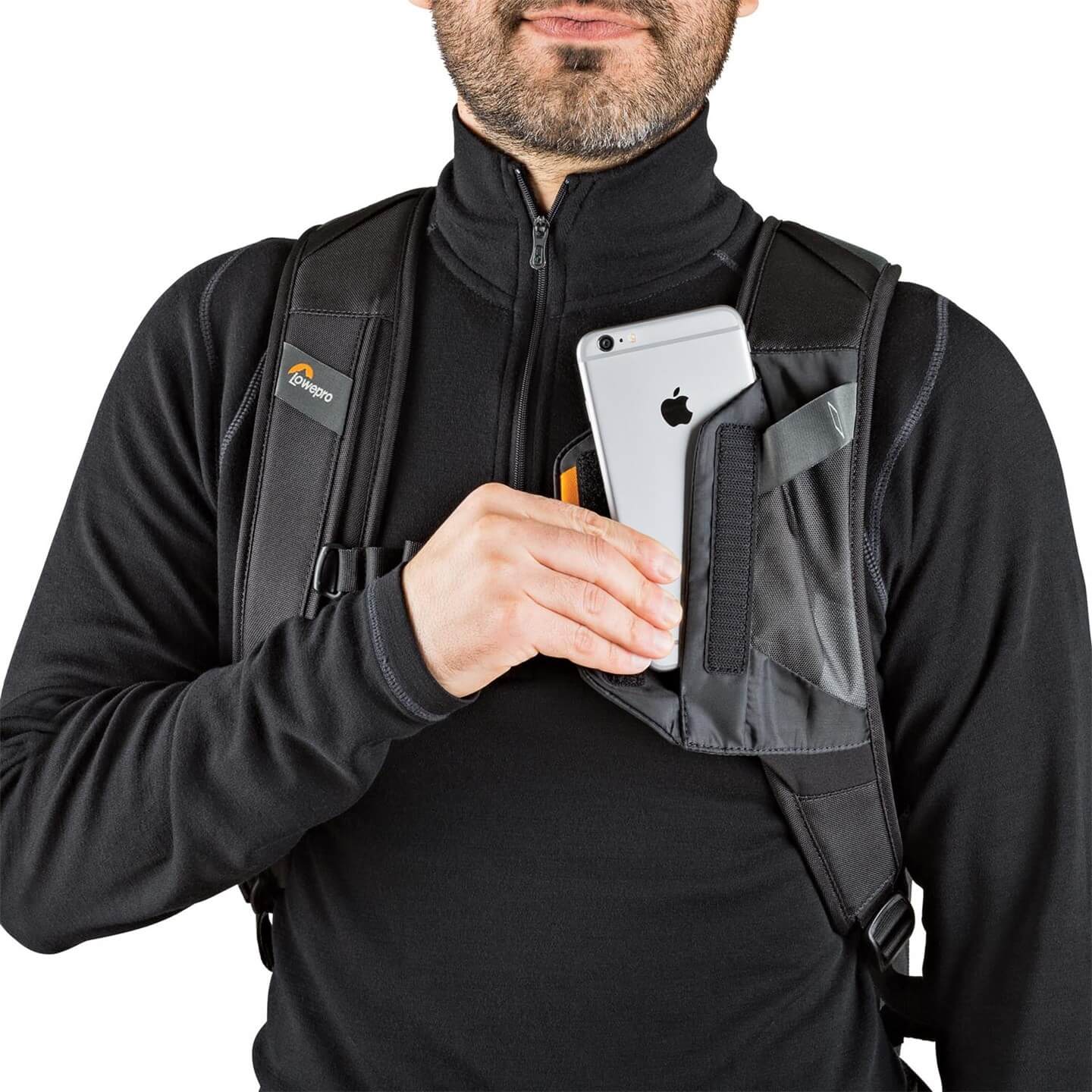 Plecak wyposażono w system regulowanych przegród oraz panel z paskami podtrzymującymi akcesoria - po to aby wszystkie drobiazgi, złączki, śruby, przewody oraz akumulatory zawsze pozostawały na miejscu. Ponadto o komfort użytkownika dbają wygodne pasy (w tym piersiowy i biodrowy). Szybki dostęp do smartfona zapewnia kieszeń PhoneZone. Tylna ściana plecaka została wyposażona w przewiewną warstwę odprowadzającą ciepło i wilgoć. Ponadto posiada 2 kieszenie na rzeczy osobiste, dające łatwy dostęp np. do butelki z wodą. Zewnętrzny system pasków SlipLock™ zapewnia dodatkowe miejsce do przechowywania.