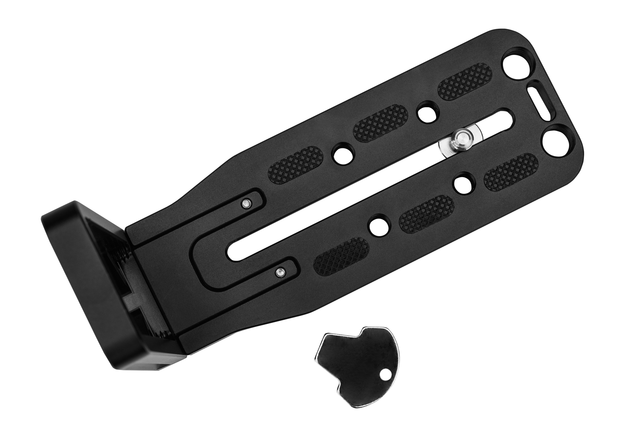 Fotopro QAL-L to adapter z uchwytem typu L ("L-bracket"), który pozwoli w szybki i wygodny sposób zmienić pozycję aparatu z poziomego na pionowy. Będzie doskonałym wyborem, jeśli pracujesz ze statywem, sliderem lub urządzeniami typu "motion control". Przemyślana budowa adaptera zapewnia wygodny dostęp do bocznej części aparatu, gdzie często ulokowane są porty lub gniazdo karty pamięci. Płytka jest kompatybilna ze standardem Arca-Swiss. Zastosowanie wysuwanego elementu pozwala precyzyjnie dopasować adapter do wymiarów aparatu. Akcesorium oferuje aż 18 otworów montażowych z gwintem 1/4". Połączysz z nimi wiele dodatkowych urządzeń, m.in. uchwyty "magic arm", lampy LED lub ekrany podglądowe.