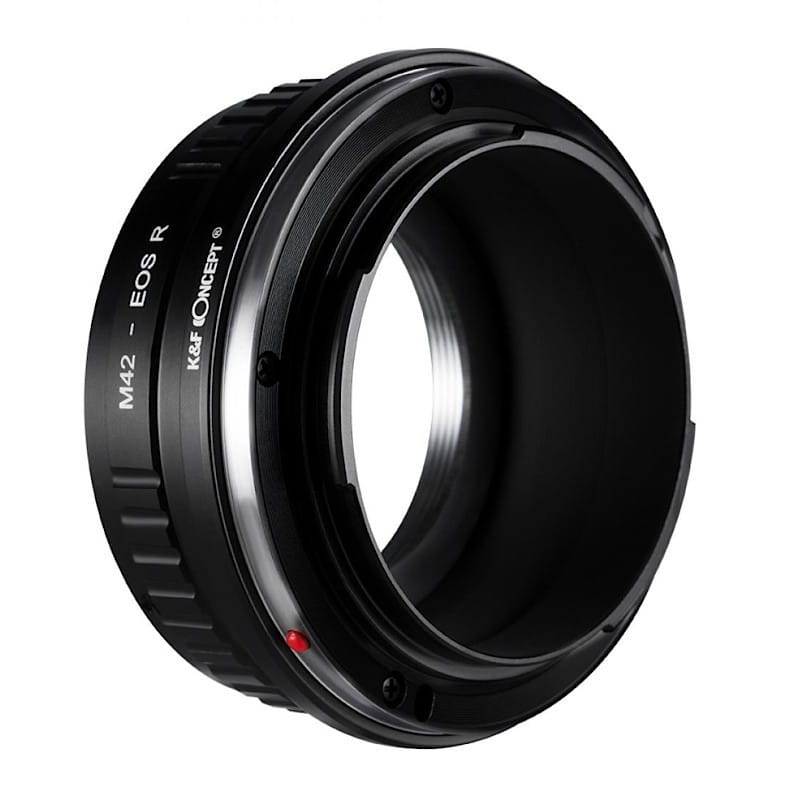 Aluminiowy, lekki i odporny na uszkodzenia mechaniczne adapter bagnetowy marki K&F Concept umożliwiający podpięcie analogowych obiektywów z mocowaniem M42 z pełnoklatkowymi aparatami bezlusterkowymi Canon z bagnetem typu RF (EOS R) - R5, R6, R czy RP.