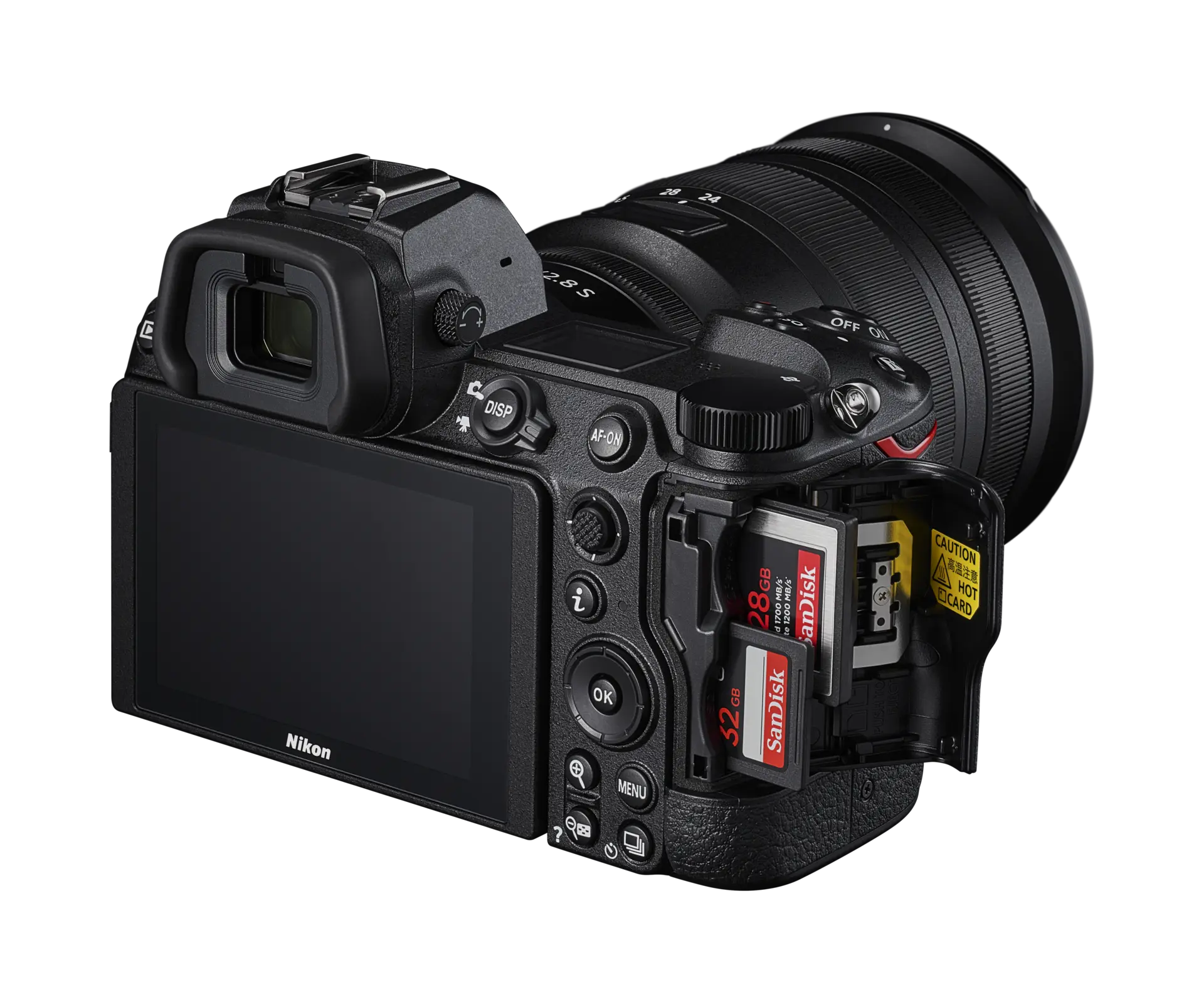 Dwa gniazda kart pamięci: 1 karta CFexpress lub XQD i 1 karta Secure Digital (SD); dowolna karta może pełnić rolę podstawowej lub służyć do sporządzania kopii zapasowych danych bądź do osobnego zapisywania zdjęć w formacie NEF (RAW) i JPEG; zdjęcia można kopiować między kartami.