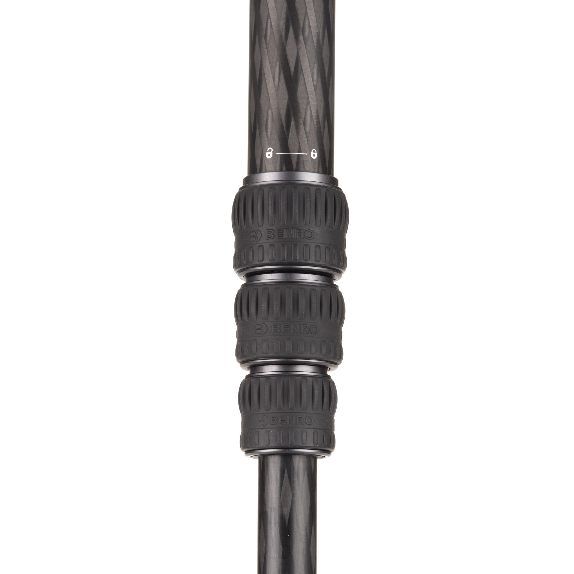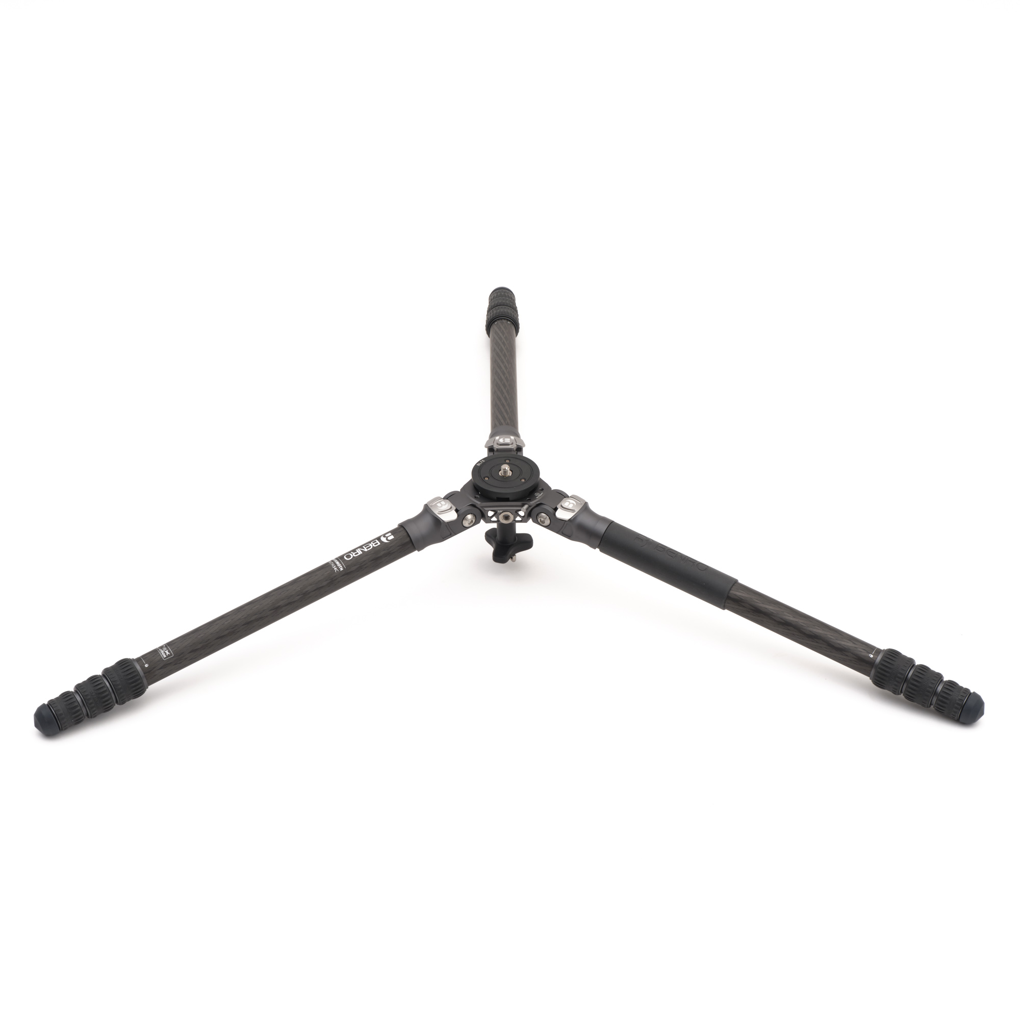 Cztery sekcje nóg z blokadami typu twist-lock pozwalają szybko rozłożyć statyw i dopasować jego wysokość.