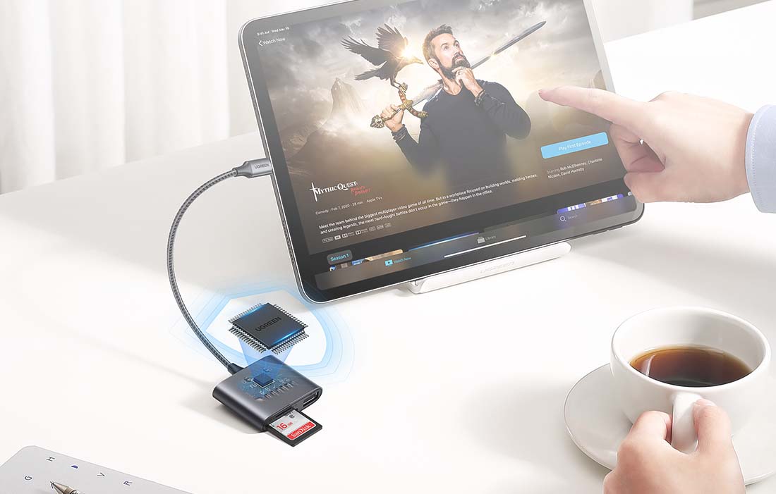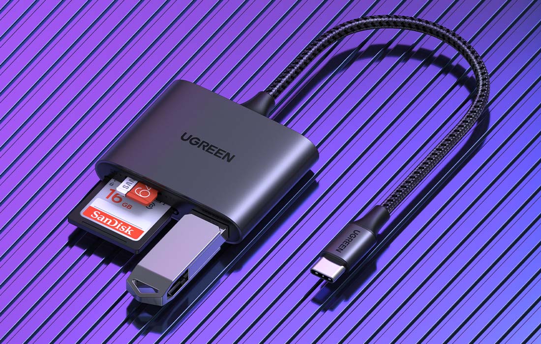 Czytnik UGREEN CM387 pozwala odczytywać dane z 2 kart pamięci jednocześnie, a dzięki interfejsowi USB-C zapewnia niezawodne, szybkie połączenie.