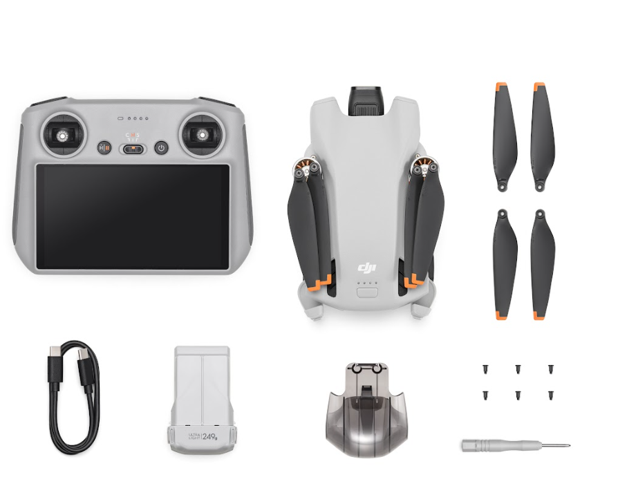 W skład zestawu wchodzi również zaawansowana aparatura sterująca DJI RC, która została wyposażona w czytelny wyświetlacz FHD. Ma także wbudowany wytrzymały akumulator, który zapewnia długi czas pracy. Co więcej, domyślnie zainstalowana aplikacja DJI Fly sprawia, że możesz latać bez konieczności podłączania smartfona. Kontroler jest przy tym wyjątkowo prosty i wygodny w obsłudze.
