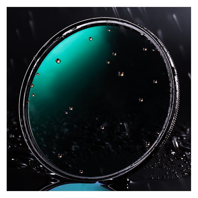 Profesjonalny, wielopowłokowy kołowy filtr polaryzacyjny (CPL) K&F Concept serii Nano-X o średnicy 82 mm. Specjalna, zielona powłoka gwarantuje przepuszczalność światła na poziomie ≥ 45%. Do jego produkcji wykorzystano wielokrotnie polerowane i szlifowane szkło optyczne Schott B270, cechujące się bardzo niskim współczynnikiem załamania światła, co pozwala znacznie zredukować niepożądane flary czy odblaski.
