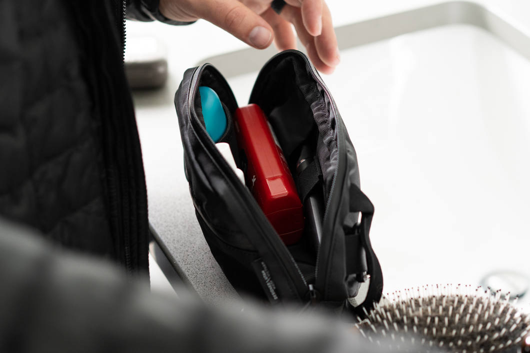 Pętla z taśmy & System klipsów do integracji wielu torebek na przybory toaletowe