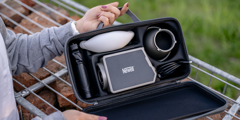 Newell Zora 90 WB to prawdziwa rewolucja, jeśli chodzi o kompromis między wymiarami a funkcjonalnością. Urządzenie skutecznie łączy dużą moc z wbudowanym akumulatorem, kompaktową konstrukcją i profesjonalnymi możliwościami sterowania. Przy wymiarach zaledwie 15 x 8,5 x 10 cm oferuje parametry, które były dotąd zarezerwowane dla znacznie większych i cięższych lamp studyjnych. Dzięki temu może z powodzeniem konkurować z klasycznymi urządzeniami zasilanymi z sieci – i często przewyższa je swoimi możliwościami, oferując mobilność, szybką adaptację do potrzeb i gotowość do pracy w każdych warunkach. To idealne narzędzie dla twórców, którzy nie chcą wybierać między jakością a wygodą.
