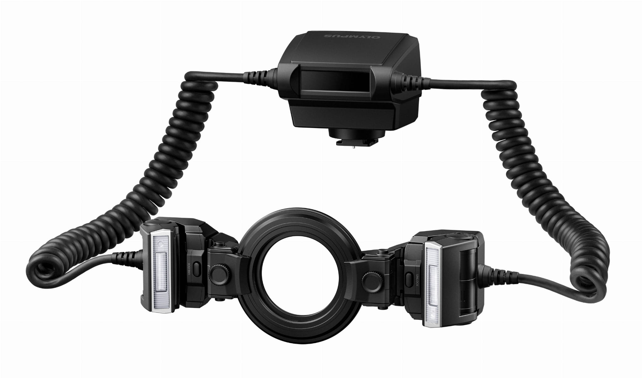Urządzenie w zestawie posiada także dołączony pierścień pośredni, dzięki któremu możemy połączyć obiektywy M. Zuiko Digital ED 30 mm f/3.5 Macro, M. Zuiko Digital ED 60 mm f/2.8 Macro oraz M. Zuiko Digital ED 12‑40 mm f/2.8 PRO.