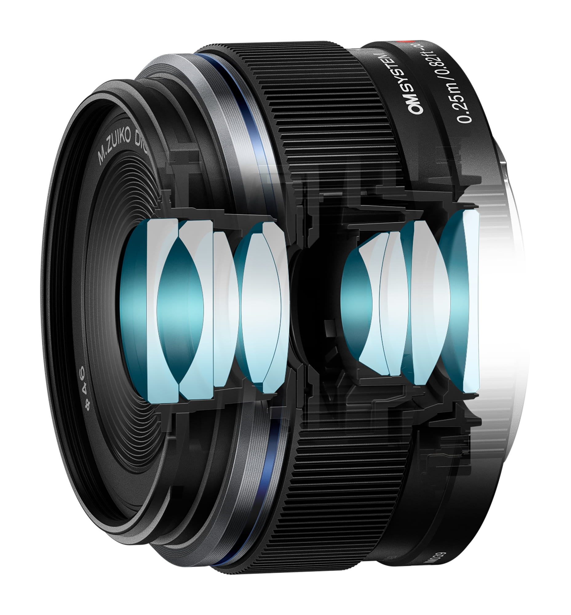 Obiektyw jest wyposażony w soczewki DSA (Dual Super Aspheric) i HR (High Refractive Index) w celu zmniejszenia aberracji. Dzięki 9 elementom w 6 grupach zapewnia wysoką jakość obrazu i rozdzielczość w kompaktowej, lekkiej konstrukcji (37,6 mm, 112 g).
