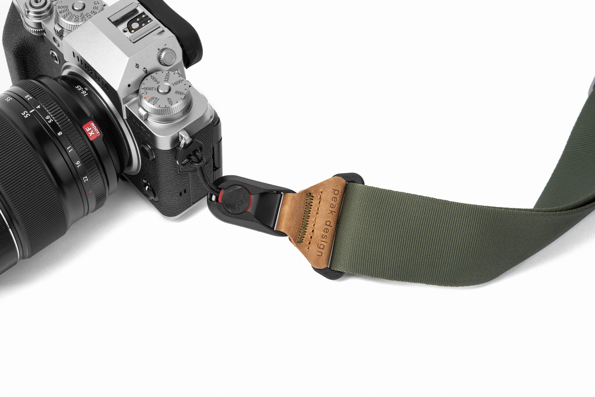 Zastosowanie innowacyjnego systemu kotwic umożliwia proste i szybkie odpięcie aparatu od paska umożliwiając podczepienie go do innych pasków Peak Design (np. paska na rękę CLUTCH).