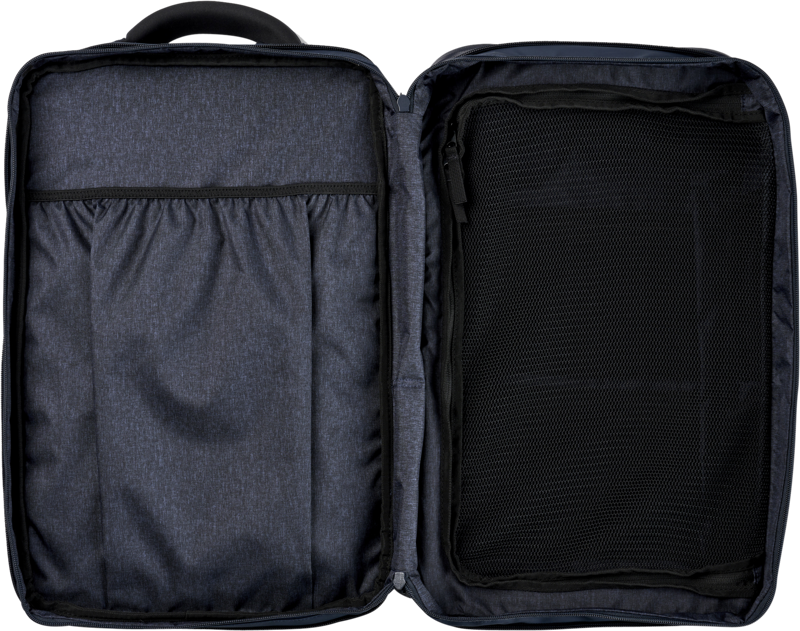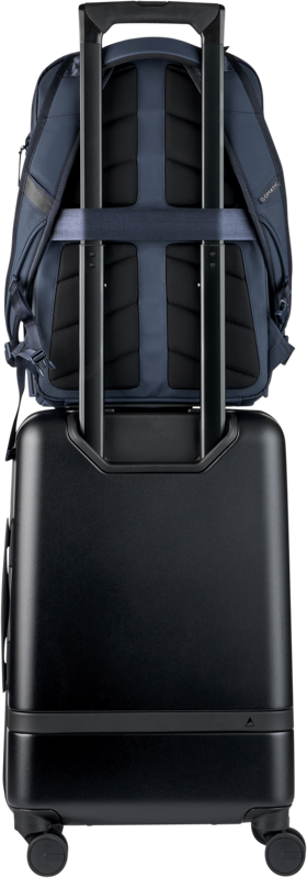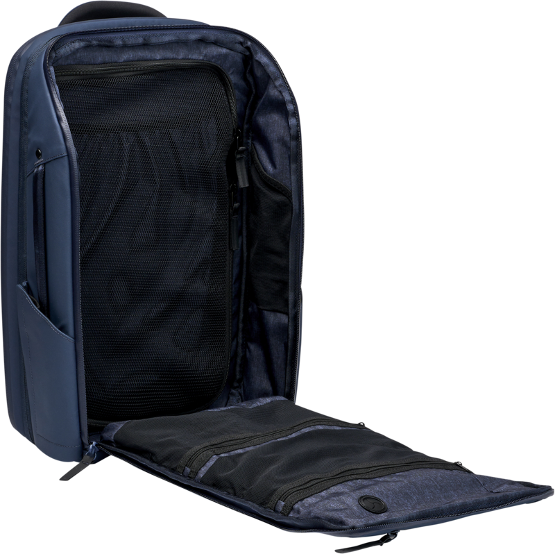 - Kieszeń na walizkę umożliwia przymocowanie plecaka do uchwytu bagażu na kółkach.