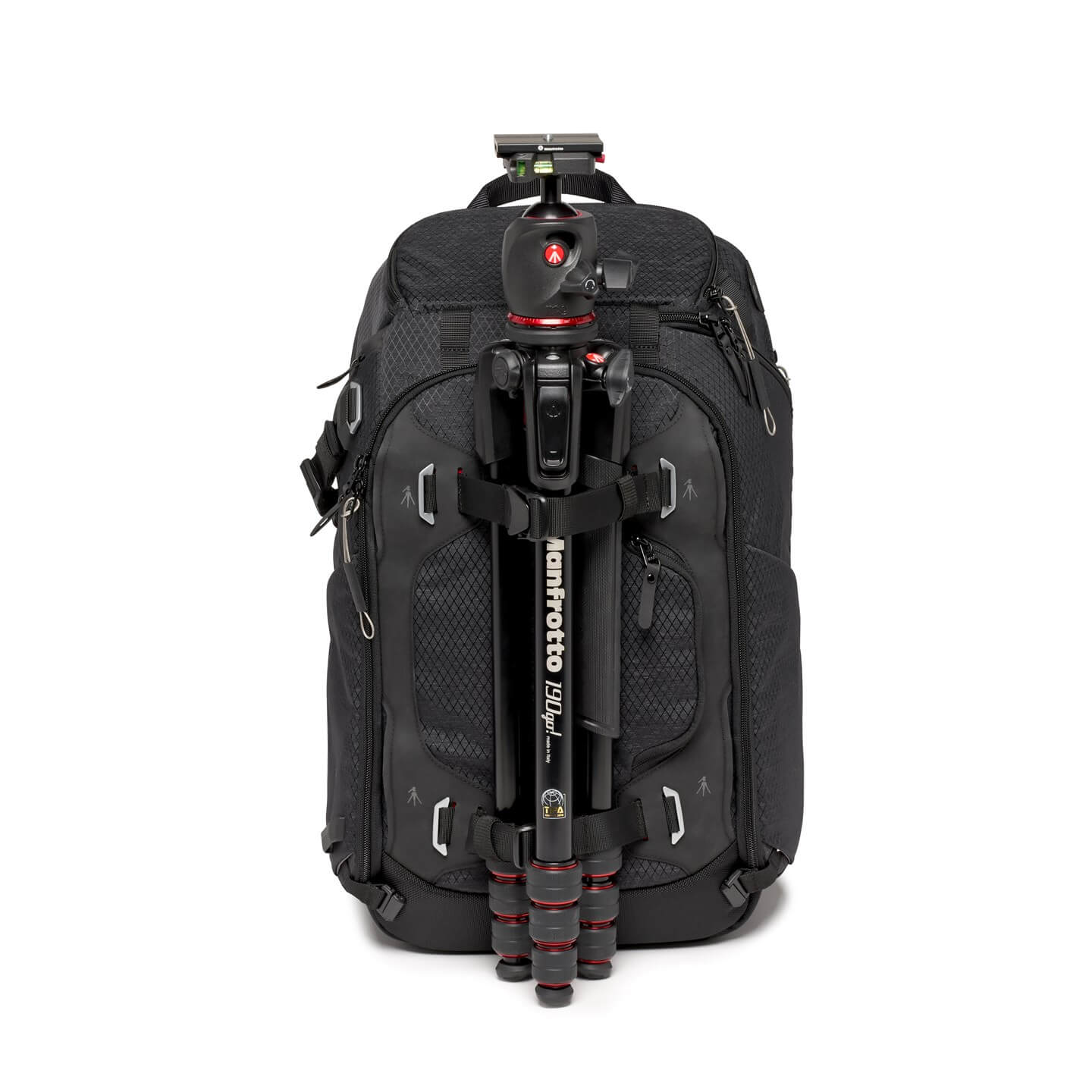 . Chowane paski na frontowej części umożliwią mocowanie dużego statywu (jak Manfrotto 055), slidera lub dwóch mniejszych akcesoriów jak monopod czy mały statyw oświetleniowy.