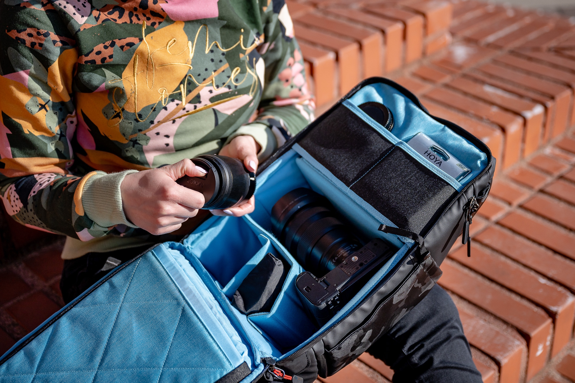 Fotopro TS-01 to pojemny plecak, który wyróżnia się stylowym wzornictwem, wielopunktowym dostępem do sprzętu oraz możliwością personalizacji wnętrza. Z łatwością zmieścisz w nim aparat z obiektywem 24-70 mm, drona, laptopa (13,3"), tablet i dodatkowe akcesoria fotograficzne. Wykonano go z mocnej tkaniny odpornej na trudne warunki atmosferyczne i rozdarcia. W zestawie znajdziesz też specjalny pokrowiec przeciwdeszczowy. Mnogość użytecznych funkcji, pasy (piersiowy oraz biodrowy), wygodne szelki, a także miękki tylny panel wykończony przewiewną siatką sprawią, że każda podróż z tym plecakiem będzie niezwykle komfortowym doświadczeniem.