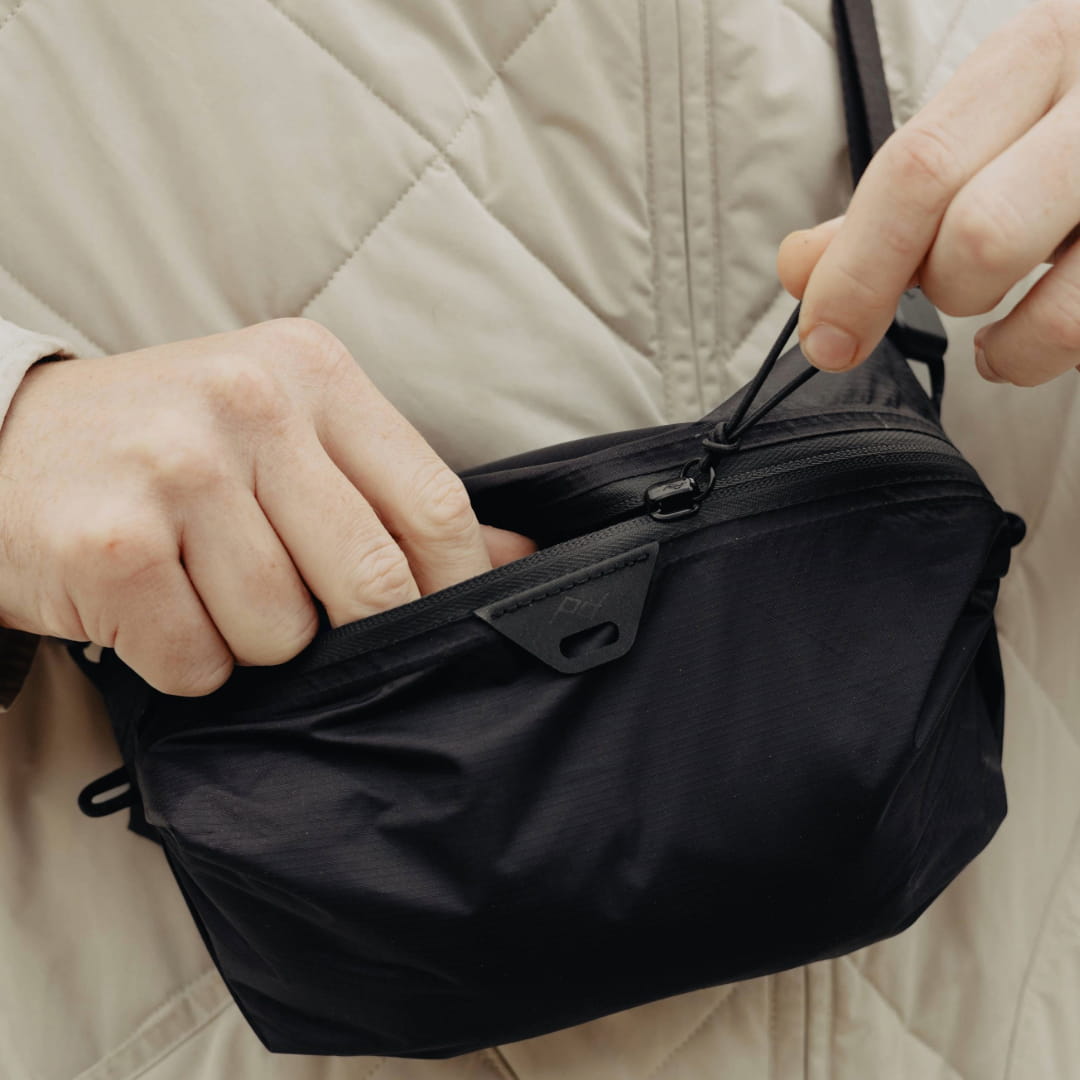 Pokrowiec łatwo przekształcisz w ultralekką chustę, mocując regulowany pasek do przenoszenia lub pasek do aparatu Peak Design (oba sprzedawane osobno) do pętli do przenoszenia Cord Hook ™. Możesz też zamontować pokrowiec zewnętrznie na dowolnej torbie Peak Design za pomocą 2 zewnętrznych przepustów na paski - to zupełnie nowy wymiar modułowej organizacji.
