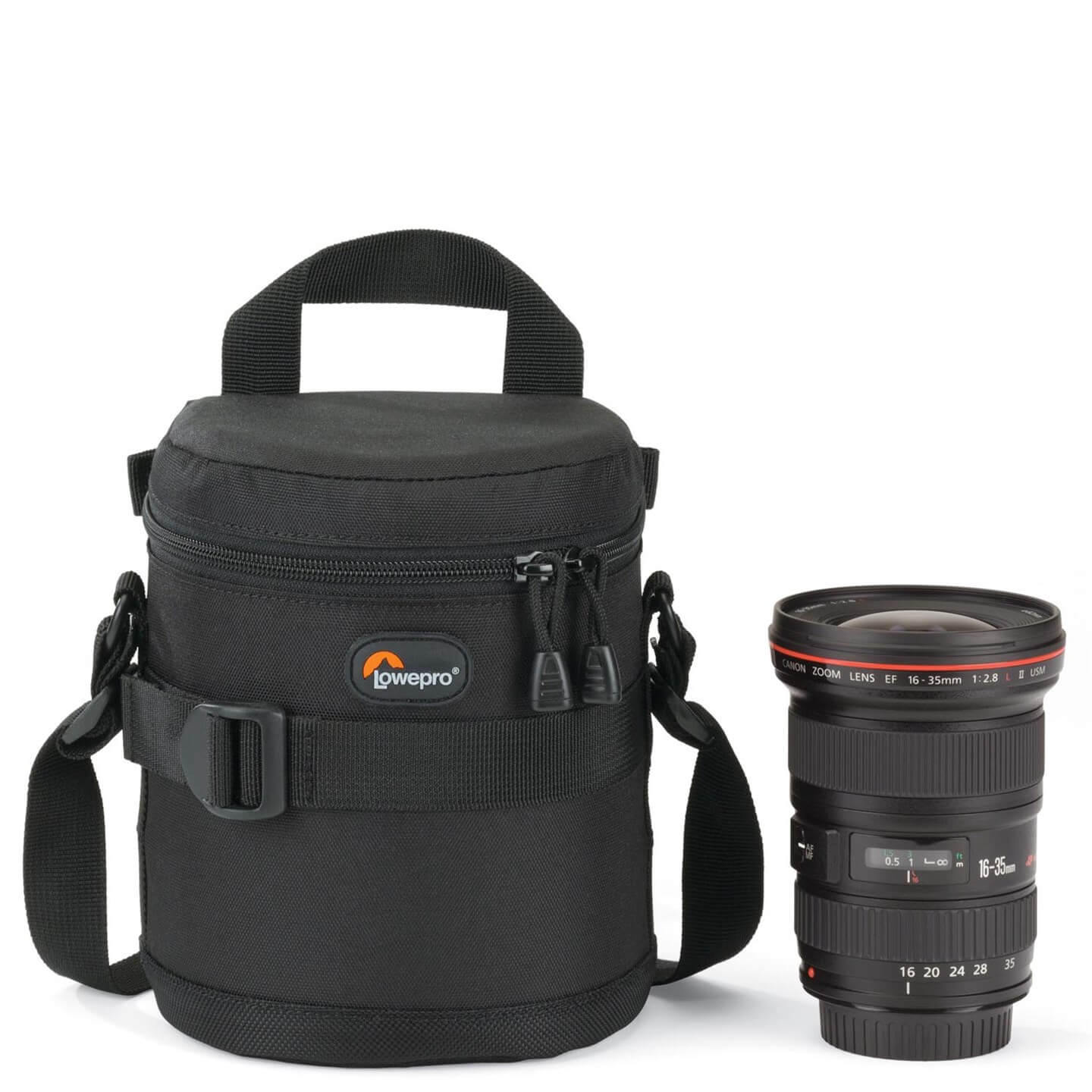 Obiektyw to często najdroższy element zestawu fotografa. Inwestujemy w nie setki, a nawet tysiące złotych. Jednocześnie są one dość wrażliwe na uderzenia i wstrząsy. Warto zapewnić im odpowiednie zabezpieczenie do przenoszenia i przechowywania. Futerał wzmocniony został specjalną, grubą warstwą pianki, która absorbuje uderzenia. Specjalna konstrukcja i zapięcie na suwak zapobiega przedostawaniu się kurzu do jego wnętrza. Od wewnętrznej strony na klapie znajduje się siateczkowa kieszonka, do której można schować dekielek po zamocowaniu obiektywu na aparacie. SlipLockT umożliwia mocowanie futerału na kompatybilnych torbach Lowepro, a także na zwykłym pasku do spodni. Ten model dedykowany jest na obiektyw 24-70mm f/2.8. Bez problemu pomieści także inne obiektywy o podobnych wymiarach