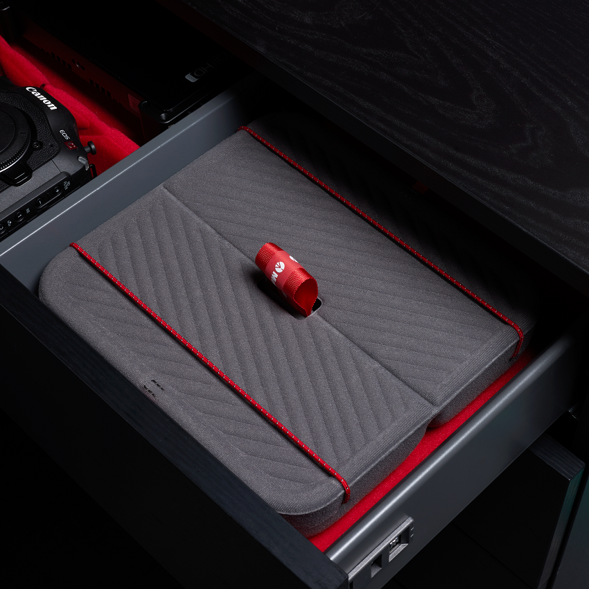 • Przechowuje i przenosi sprzęt z szuflady studia do toreb Cineloader