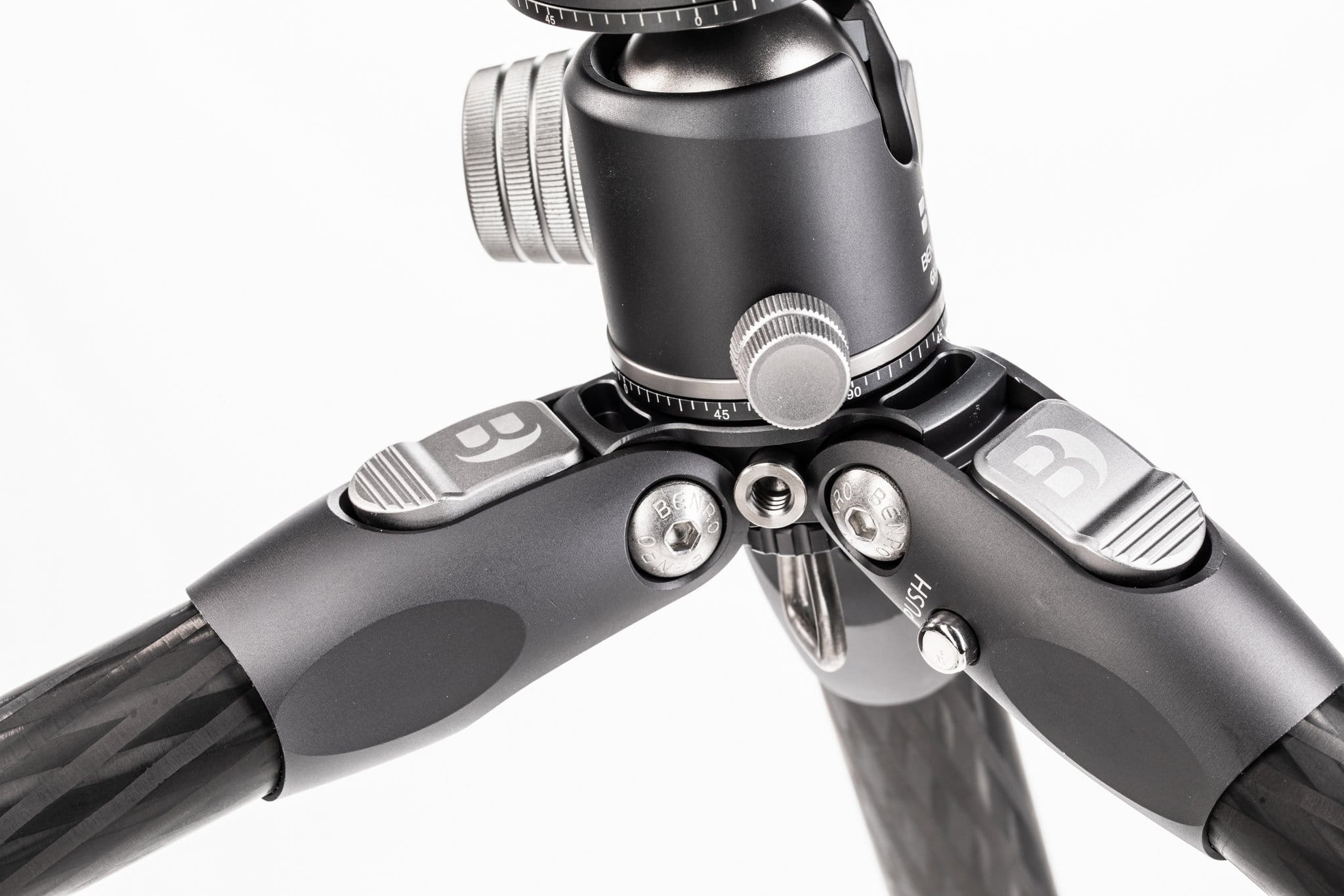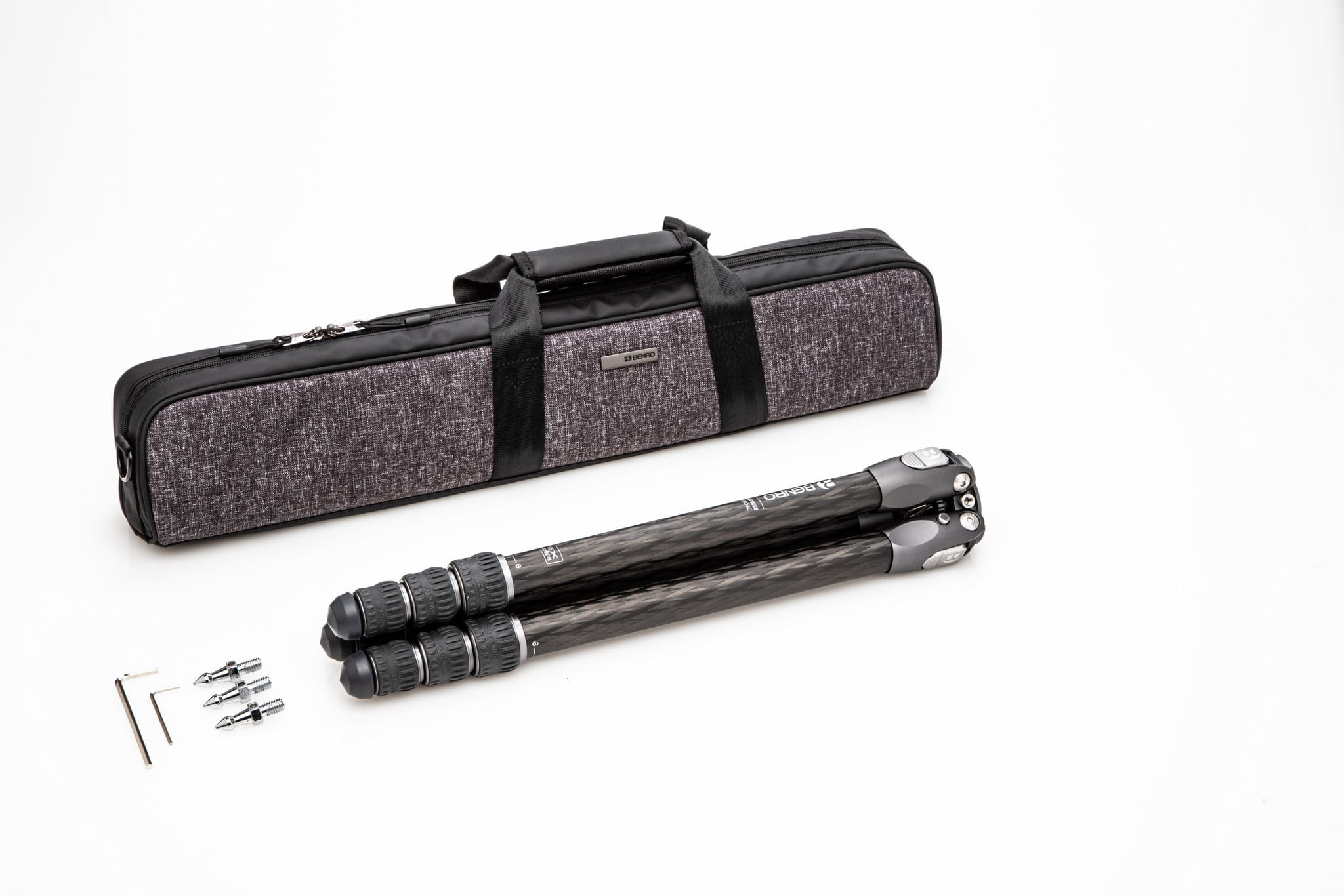 Oczekiwania te spełniono stosując do jego budowy wysokiej jakości włókno węglowe oraz rezygnując z kolumny centralnej. Ta ostatnia cecha ma duży wpływ na rozmiar złożonego statywu, tak bardzo istotny podczas poruszania się w trudnym terenie. Średnica złożonego trójnogu wynosi jedyne 8cm dzięki czemu jest on łatwy do schowania w plecaku lub walizce. Nogi mogą być rozłożone niezależnie i posiadają trzy pozycje blokownia. Połączone są ze sobą aluminiowym pająkiem na górze którego znajduje się płaska baza z gwintem statywowym 1/4” i 3/8”. Sam pająk posiada również 3 gwinty 1/4” służące do instalacji dodatkowych akcesorii oraz hak balastowy pozwalający na przymocowanie dodatkowej masy stabilizującej . Nogi zakończone są gumowymi stopkami wyprofilowanymi tak aby zapewnić najlepszą przyczepność niezależnie czy nogi ustawione są pionowo, pod kątem czy prawie poziomo.
