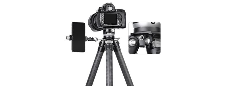 Z boku platformy znajduje się gwint montażowy o średnicy 1/4” służący do instalacji uchwytu na smartfon, lampę lub kamerę sportową. Kolejny otwór montażowy również 1/4” służy do wkręcenia haka obciążającego statyw w trudnych warunkach pogodowych. Nogi przymocowane są do platformy za pomocą wałków ze stali nierdzewnej i mosiężnych tulei – materiałów które trudno spotkać w konkurencyjnych rozwiązaniach.