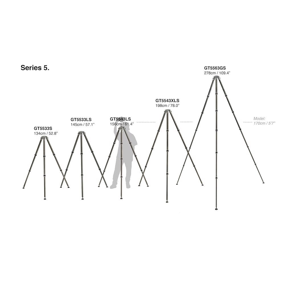 Dzięki sporej średnicy pierwszej sekcji (41,3 mm) i większej średnicy górnego mocowania, które jest większe niż Seria 3 i 4, ten statyw gwarantuje najwyższą trwałość i stabilność. GT5543XLS to wyjątkowo długi, 4-sekcyjny model, stworzony z myślą o profesjonalnych fotografach, którzy potrzebują bezpiecznie podnieść cięższy sprzęt i dłuższe obiektywy.