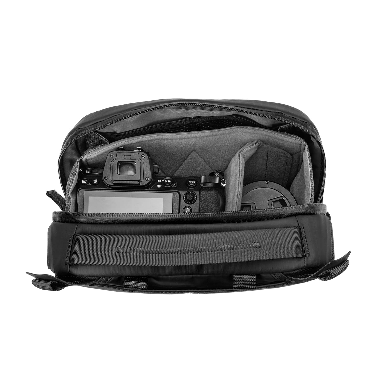 Ergonomiczny pas naramienny z szybkim systemem regulacji i odpinania sprawia, że zakładanie i zdejmowanie torby jest wyjątkowo wygodne. Dzięki tym systemom bardzo szybko zmienisz torbę naramienną na nerkę zawieszaną w pasie. Dodatkowy pasek stabilizujący zapewnia stabilność torby podczas ruchu, co czyni ją idealnym wyborem dla aktywnych fotografów – niezależnie od tego, czy jesteś na rowerze, pieszej wędrówce, czy w miejskim pośpiechu. Dla jeszcze większej wygody torbę wyposażono w solidną górną rączkę, ułatwiającą przenoszenie jej w ręce.