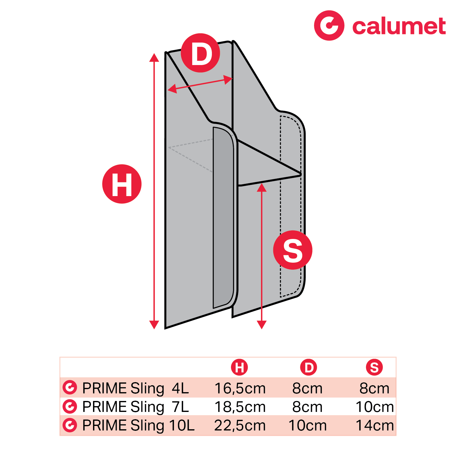 Każdy z rozmiarów toreb Sling (4L, 7L, 10L) ma dostosowane pod swój rozmiar wnętrza przegródki tzn. różnią się one głębokością, wysokością oraz lokalizacją punktu składania przegródki w półkę.