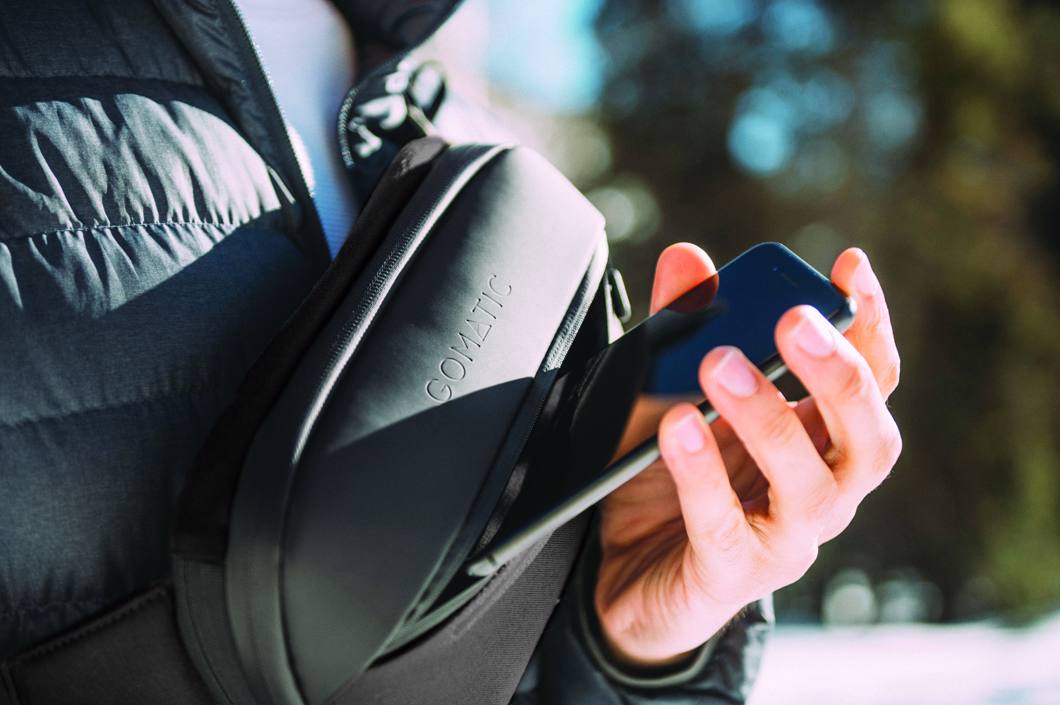 Gdy zajrzysz do środka tego plecaka na jedno ramię o pojemności 1 litra, szybko znajdziesz klucze, długopis, a także otwór na kable, za pomocą którego możesz naładować swoje urządzenia w podróży. Po zewnętrznej stronie znajduje się wygodna kieszeń na drobiazgi, do której można wygodnie sięgnąć.