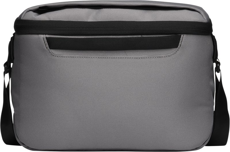 Górna część otwiera się całkowicie, zapewniając natychmiastowy, bezproblemowy dostęp. Otoczona jest wewnętrznymi kieszeniami na akcesoria i zewnętrzną kieszenią dostosowaną do przedmiotów szybkiego dostępu, takich jak telefon. Magnetyczne zamknięcie zapewnia ochronę i bezpieczeństwo sprzętu. Regulowany pasek na ramię, wyściełany podkładką, zapewnia dokładne dopasowanie, wzmocnione solidnymi nitami obrotowymi. Dodatkowy uchwyt jest idealny do szybkiego przenoszenia. Zapinana na zamek kieszeń odsłania dwie elastyczne przegrody z siatki wewnątrz pokrywy, poprawiając organizację.