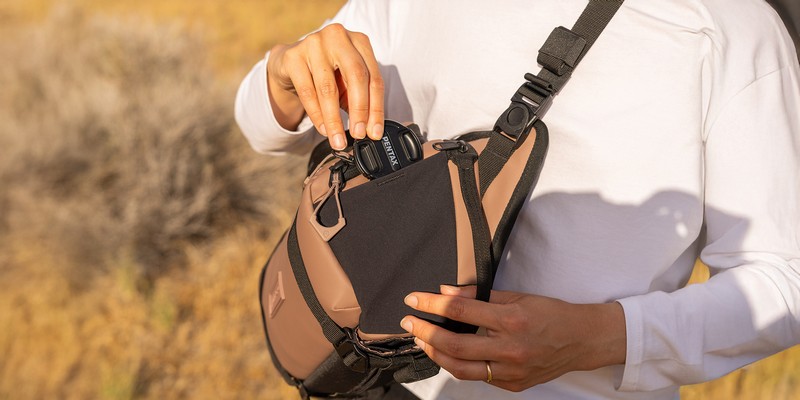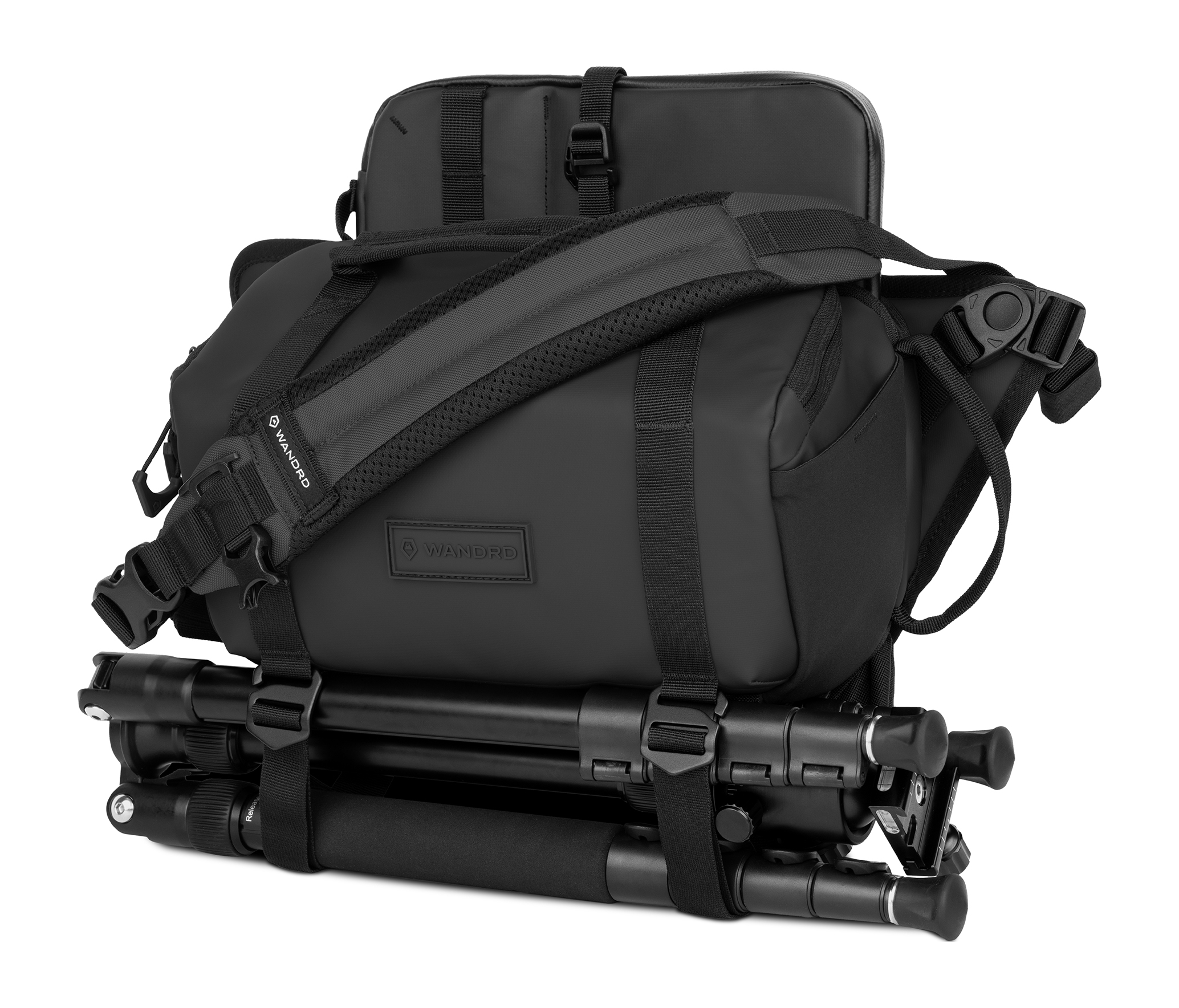 W dolnej części torby Wandrd Rogue Sling 6 l v2 znajdziesz specjalny rozkładany rękaw, który pomieści statyw lub dużą butelkę wody. Gdy dodatkowa przestrzeń nie jest Ci potrzebna, możesz go łatwo złożyć. Producent nie zapomniał też o paskach z regulacją, które umożliwiają przypięcie zrolowanej kurtki, bluzy lub małego statywu. To świetne rozwiązania, gdy masz zamiar zabrać więcej, ale nie chcesz poświęcać przestrzeni dostępnej wewnątrz torby.