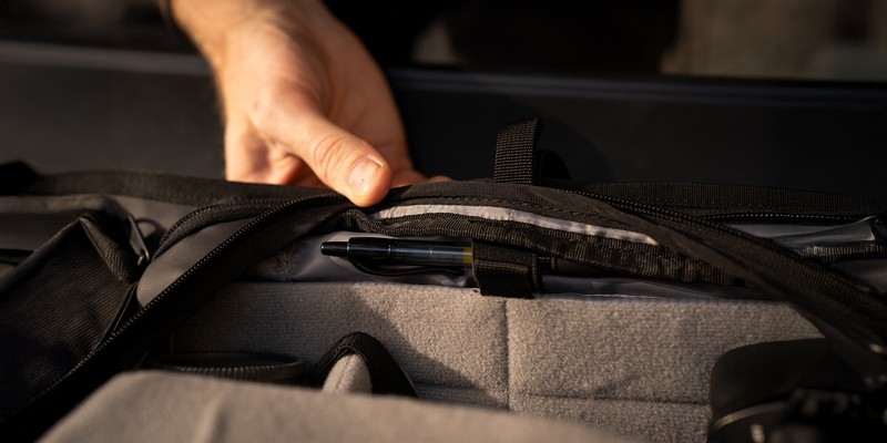 W dolnej części torby Wandrd Rogue Sling 6 l v2 znajdziesz specjalny rozkładany rękaw, który pomieści statyw lub dużą butelkę wody. Gdy dodatkowa przestrzeń nie jest Ci potrzebna, możesz go łatwo złożyć. Producent nie zapomniał też o paskach z regulacją, które umożliwiają przypięcie zrolowanej kurtki, bluzy lub małego statywu. To świetne rozwiązania, gdy masz zamiar zabrać więcej, ale nie chcesz poświęcać przestrzeni dostępnej wewnątrz torby.