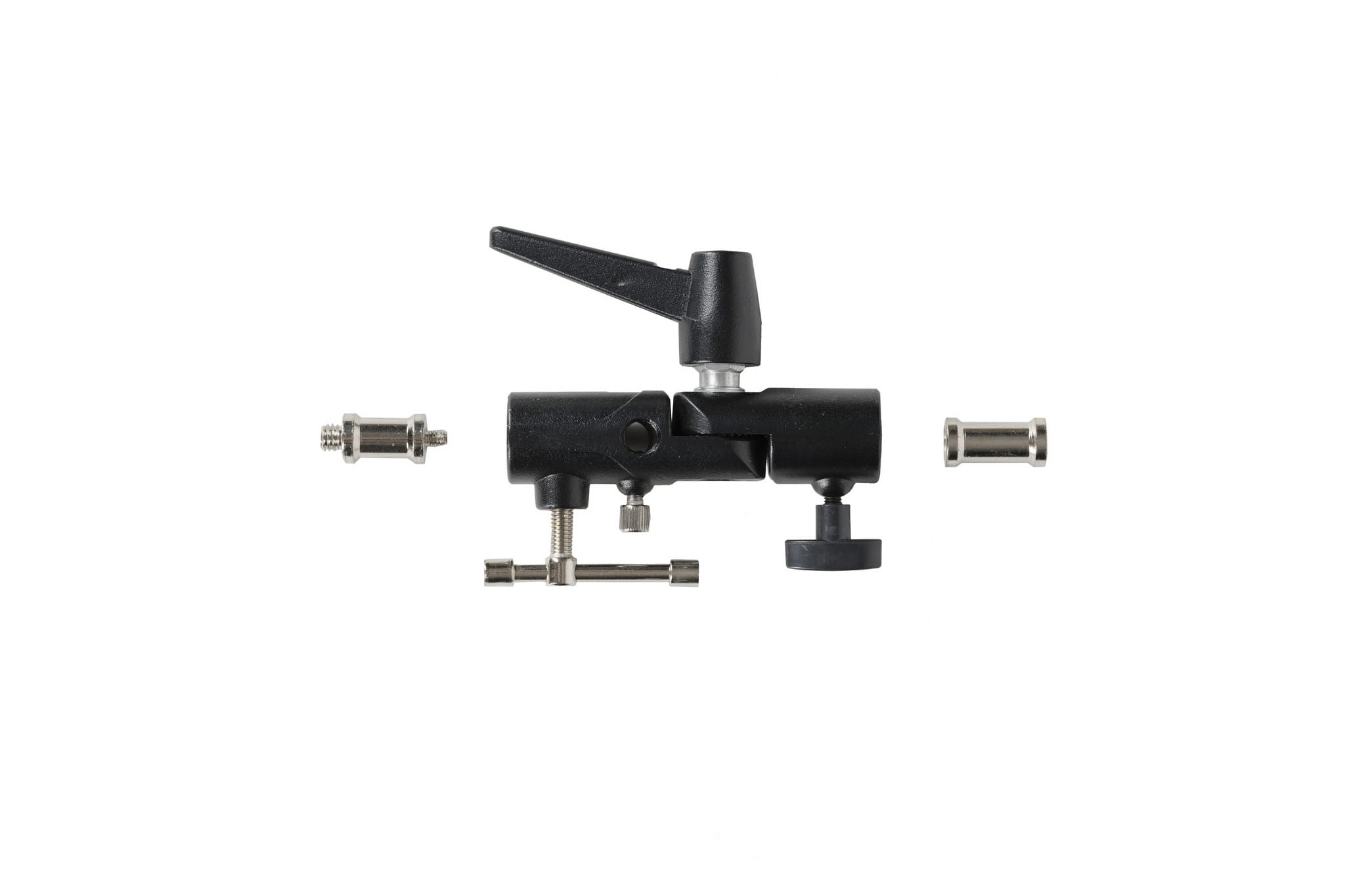 Quadralite M-9 to przegubowy uchwyt montażowy. Wyposażony jest on w uniwersalne mocowanie statywów oświetleniowych (żeńskie), dzięki któremu może być wykorzystywany z niemal każdym statywem. Montaż lampy oraz innych akcesoriów odbywa się za pomocą trzpienia zaopatrzonego w dwa mocowania gwintowe w standardzie ¼ i ⅜ cala. Uchwyt ma wbudowane mocowanie do parasolek, dzięki którym można łatwo i szybko modelować światło błyskowe podłączonej lampy. Kąt nachylenia lampy wraz z parasolką można regulować za pomocą przegubu blokowanego dzięki dedykowanemu uchwytowi.