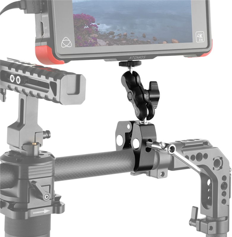 Zawiera Uniwersalne ramię przegubowe Smallrig 2163 i Klamrę zaciskową Smallrig 735. Na drugim końcu można podłączyć monitor lub lampę, a jednocześnie zaciska akcesoria o średnicy 15–40 mm, takie jak stabilizatory, C-standy itp.