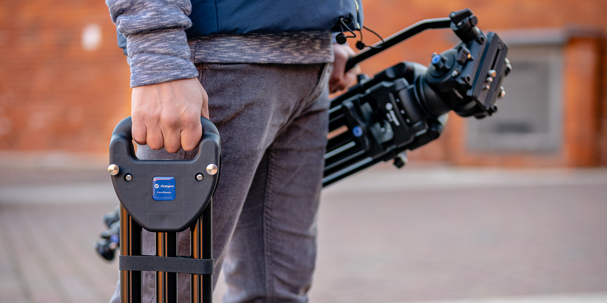 Fotopro Fire Wheels to uniwersalny wózek do trójnogich statywów fotograficznych, filmowych i oświetleniowych. Jego maksymalny udźwig wynosi 15 kg. Urządzenie rozszerzy mobilność statywów wykorzystywanych na planie, a także z powodzeniem zastąpi jazdy kamerowe, slidery lub wózki dolly. Kółka obracające się w zakresie 360º zapewniają doskonałą płynność ruchów. W razie potrzeby specjalne blokady pozwolą je całkowicie unieruchomić. Rozstaw w zakresie od 64 do 94 cm sprawia, że Fotopro Fire Wheel jest idealnym wyborem, zarówno do pracy z małymi, jak i dużymi statywami. Ergonomiczna budowa, rozkładane sekcje, uchwyt i torba, którą znajdziesz w zestawie, zapewnią wygodny transport.