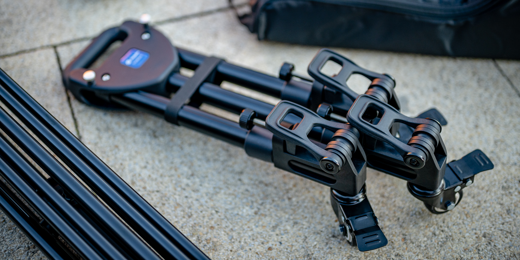 2-sekcyjna konstrukcja pozwalająca dopasować wózek zarówno do mniejszych, jak i dużych statywów