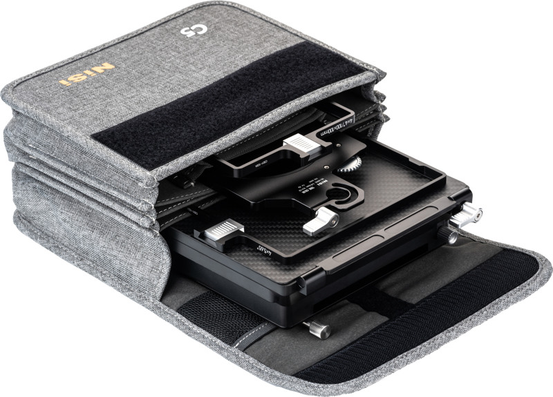 Zestaw zawiera również ramkę na filtry filmowe 4 x 5,65" oraz ramkę na filtry 4 x 4" lub filtry kwadratowe 100 x 100 mm, posiadające ramkę ze stopu aluminium i konstrukcję anti-off, która może być szybko zainstalowana bez pozostawiania odcisków palców. Można używać dwóch filtrów (po jednym w każdej tacy) w tym samym czasie. Dzięki systemowi filtrów formfitting, ultra-szerokokątne ujęcie przy użyciu ogniskowej 15 mm+ staje się możliwe, bez konieczności stosowania vinjettingu.
